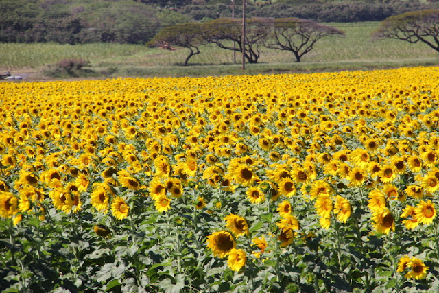 When we came to the sunflower farm near Kahului, I made Ken let me out to take pictures of the sunflowers while he rode around in circles waiting for me.